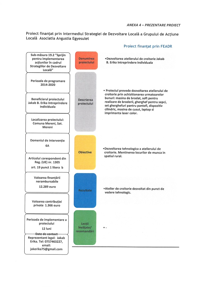 Dezvoltarea atelierului de croitorie Jakab B. Erika Intreprindere Individuala